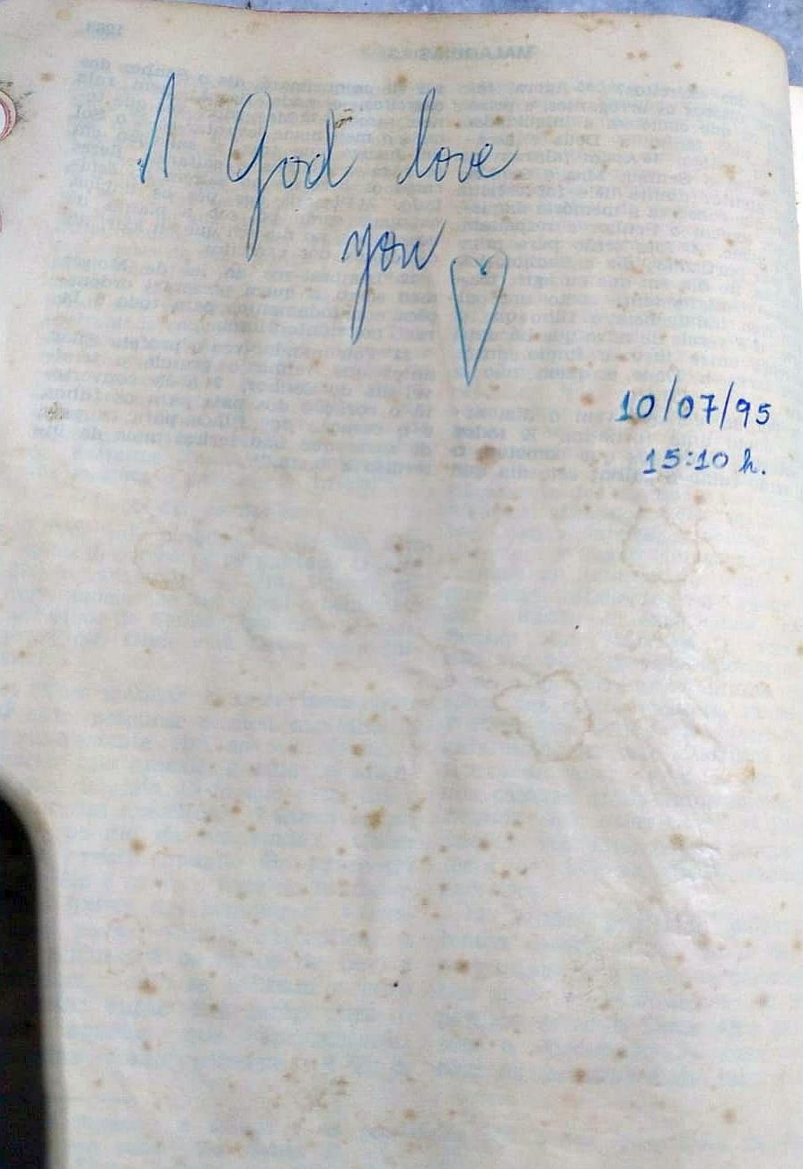 12 - Mensagem escrita na própria Bíblia – mensagem relíquia do Padre Carlos.