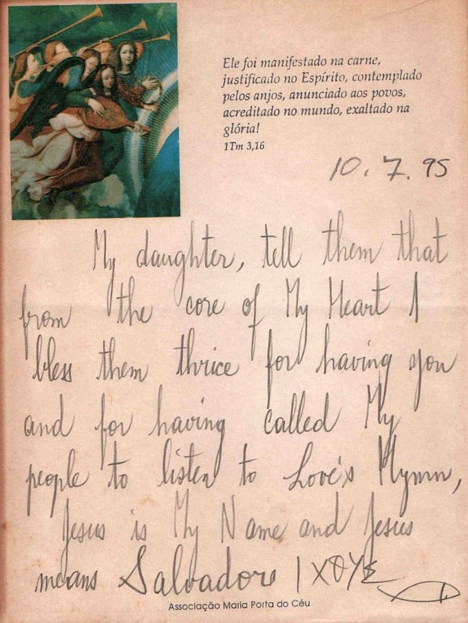 11 - Mensagem relíquia que Vassula recebeu e entregou ao Padre Carlos Alberto Giacone.
