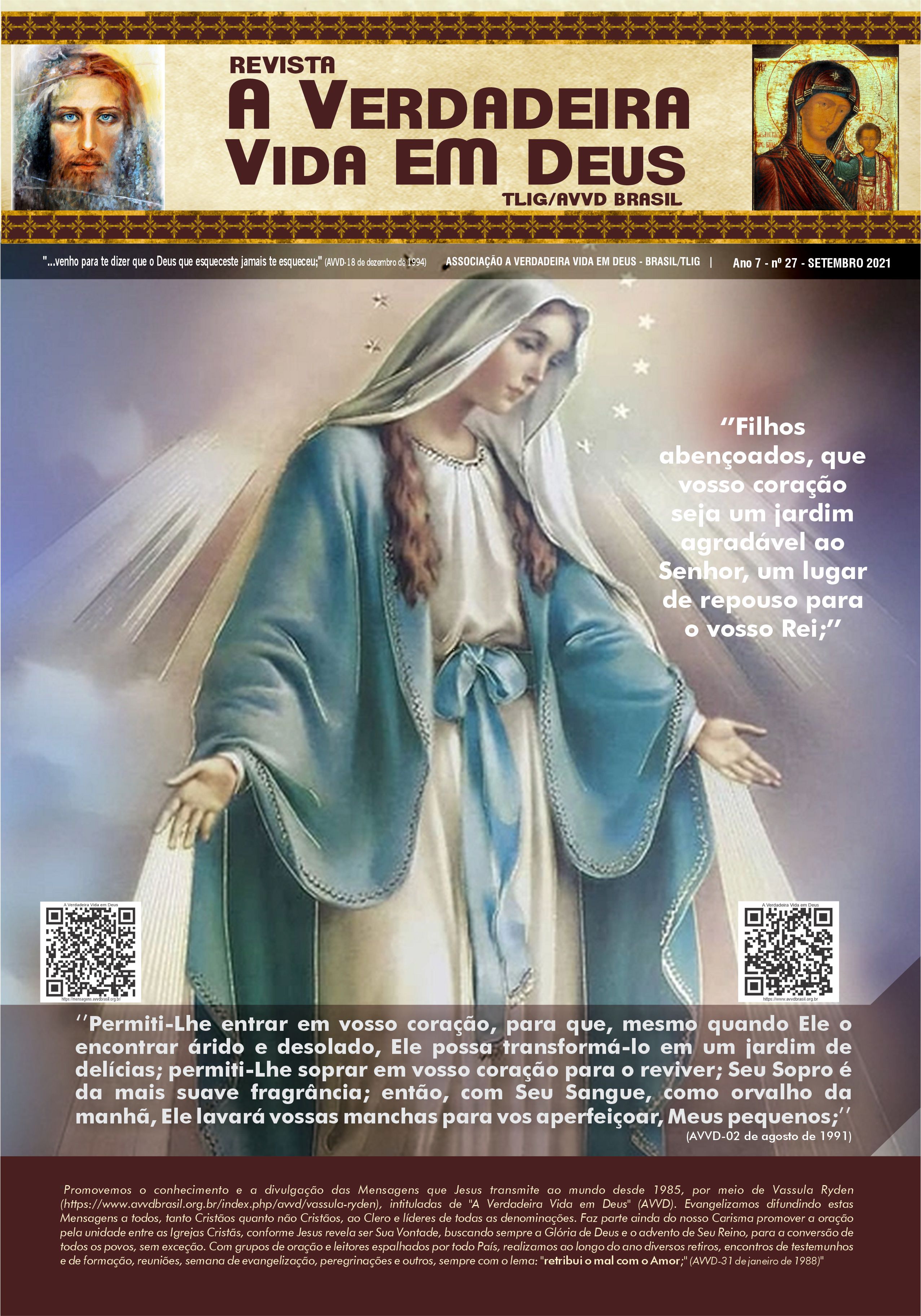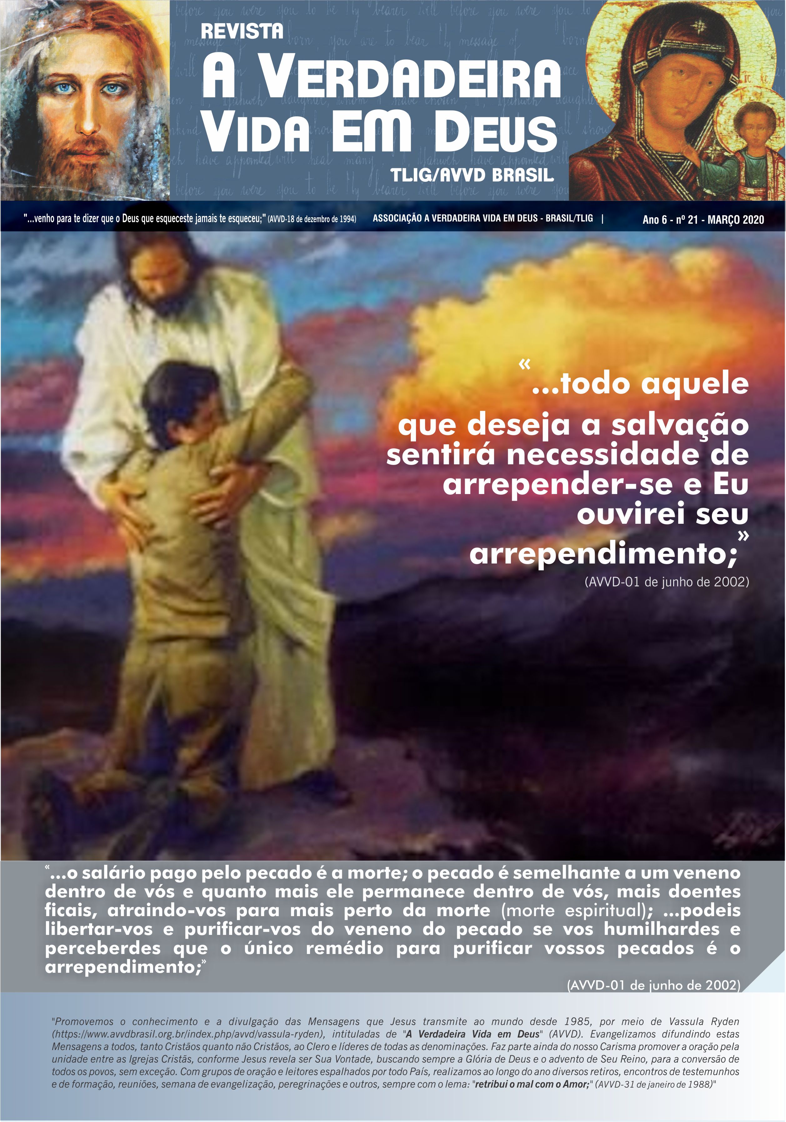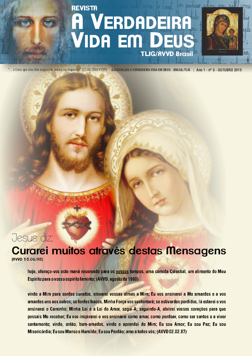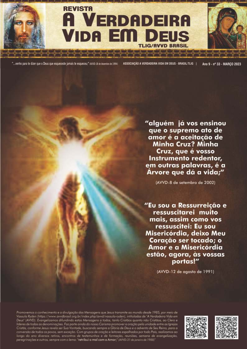 A Revista A Verdadeira Vida em Deus é repleta com informações das missões de Vassula, outras atividades da TLIG ao redor do mundo, atividades da AVVD-Brasil e vários outros ensinamentos espirituais das Mensagens. Faz sua assinatura.