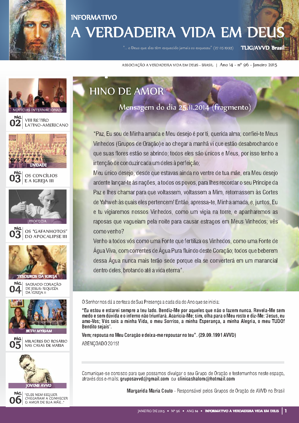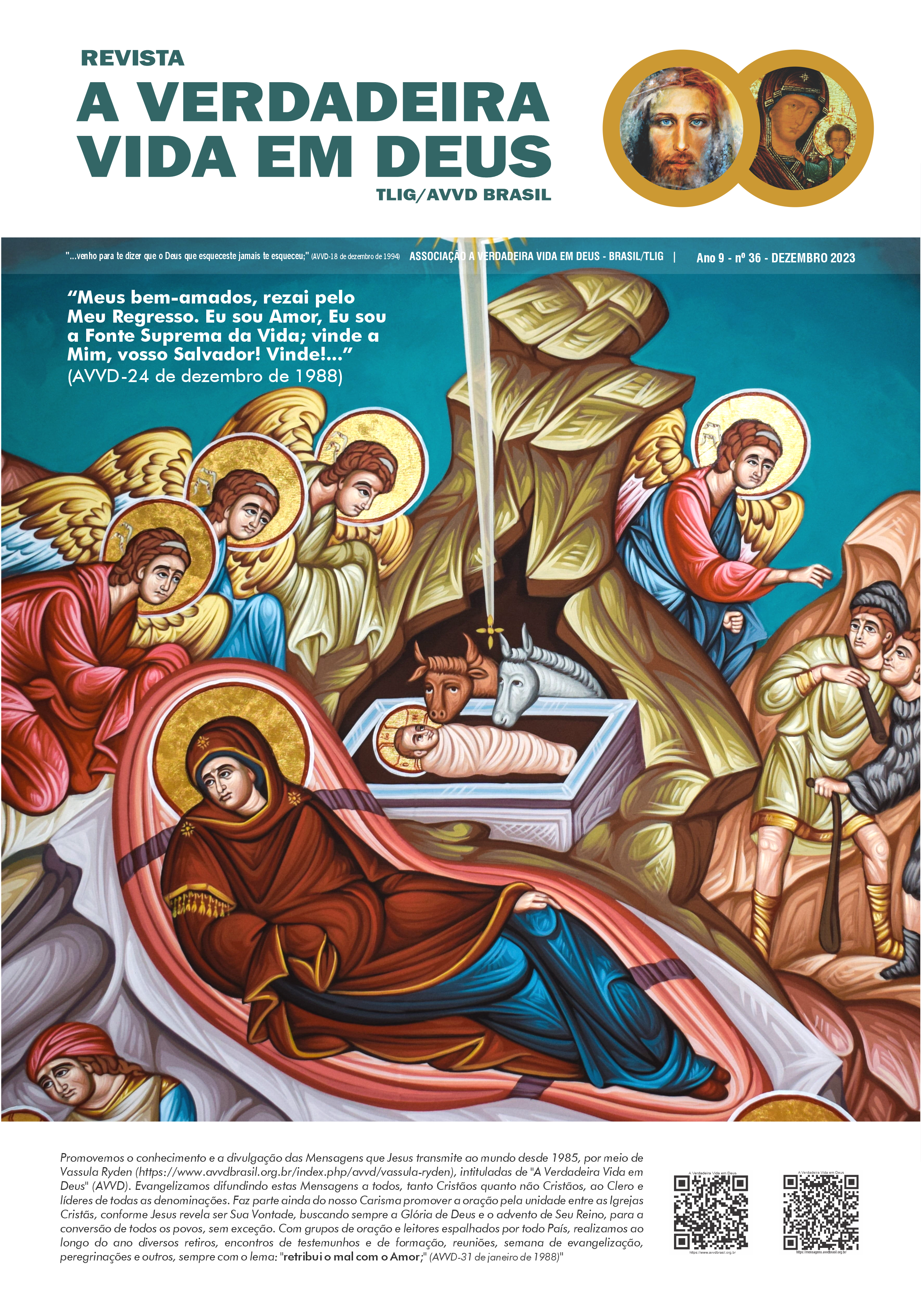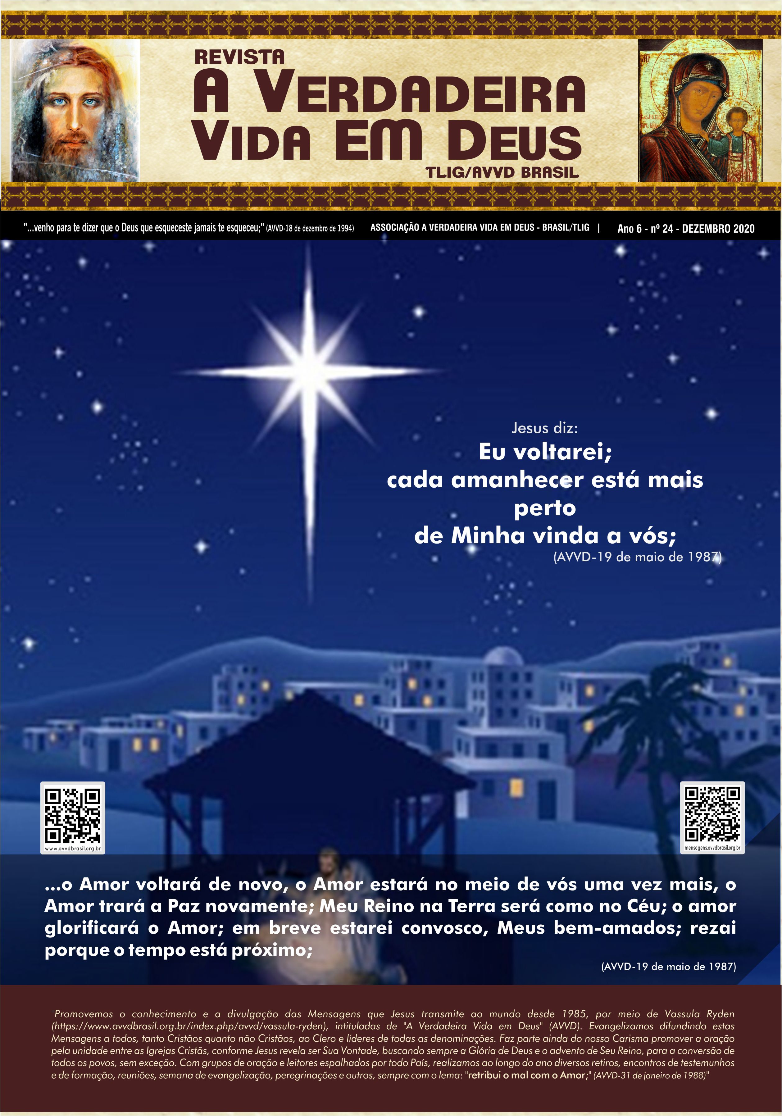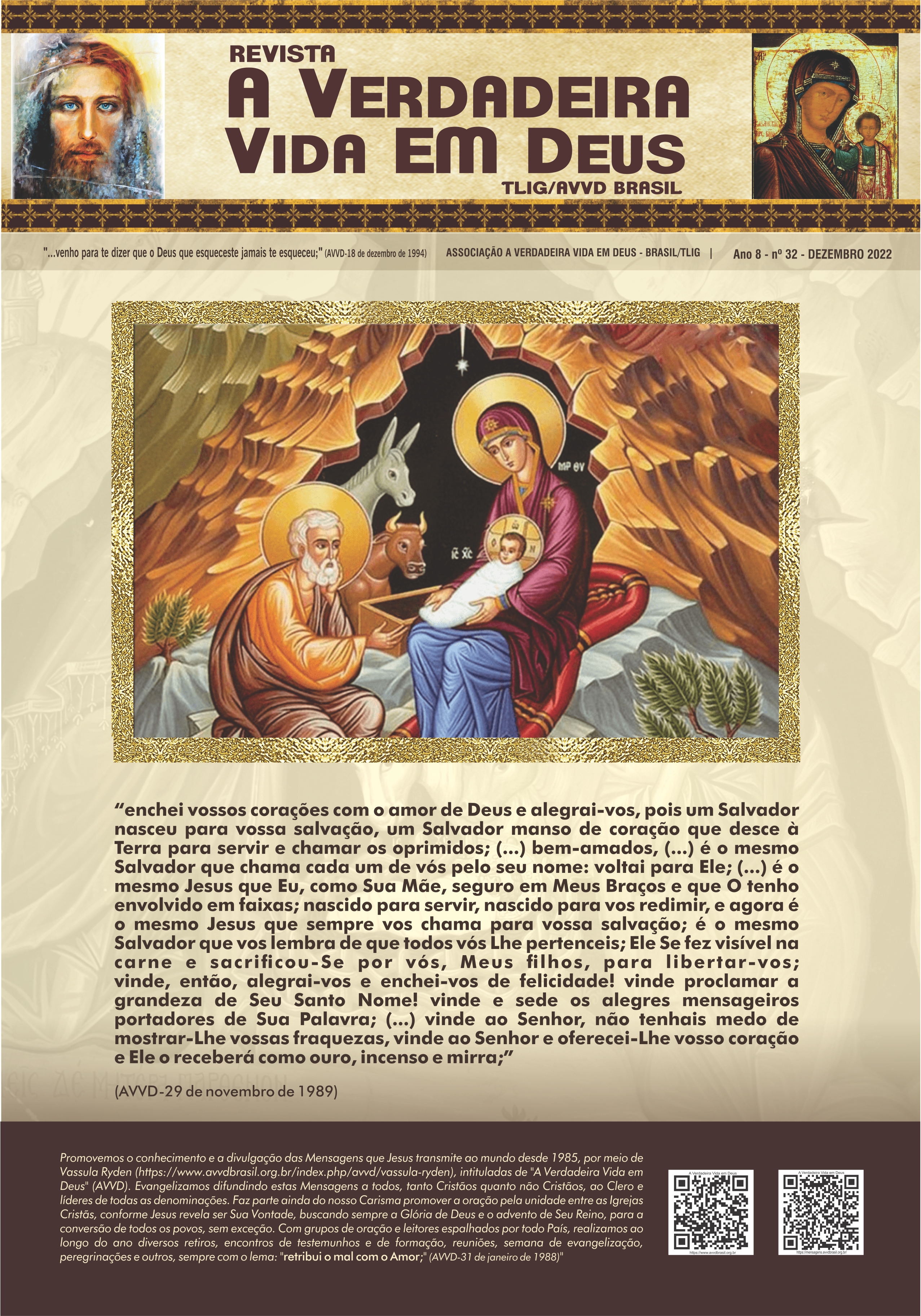 A Revista A Verdadeira Vida em Deus é repleta com informações das missões de Vassula, outras atividades da TLIG ao redor do mundo, atividades da AVVD-Brasil e vários outros ensinamentos espirituais das Mensagens. Faz sua assinatura.