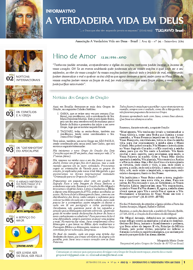Publicação de Notícias de interesse da Associação A Verdadeira Vida em Deus.