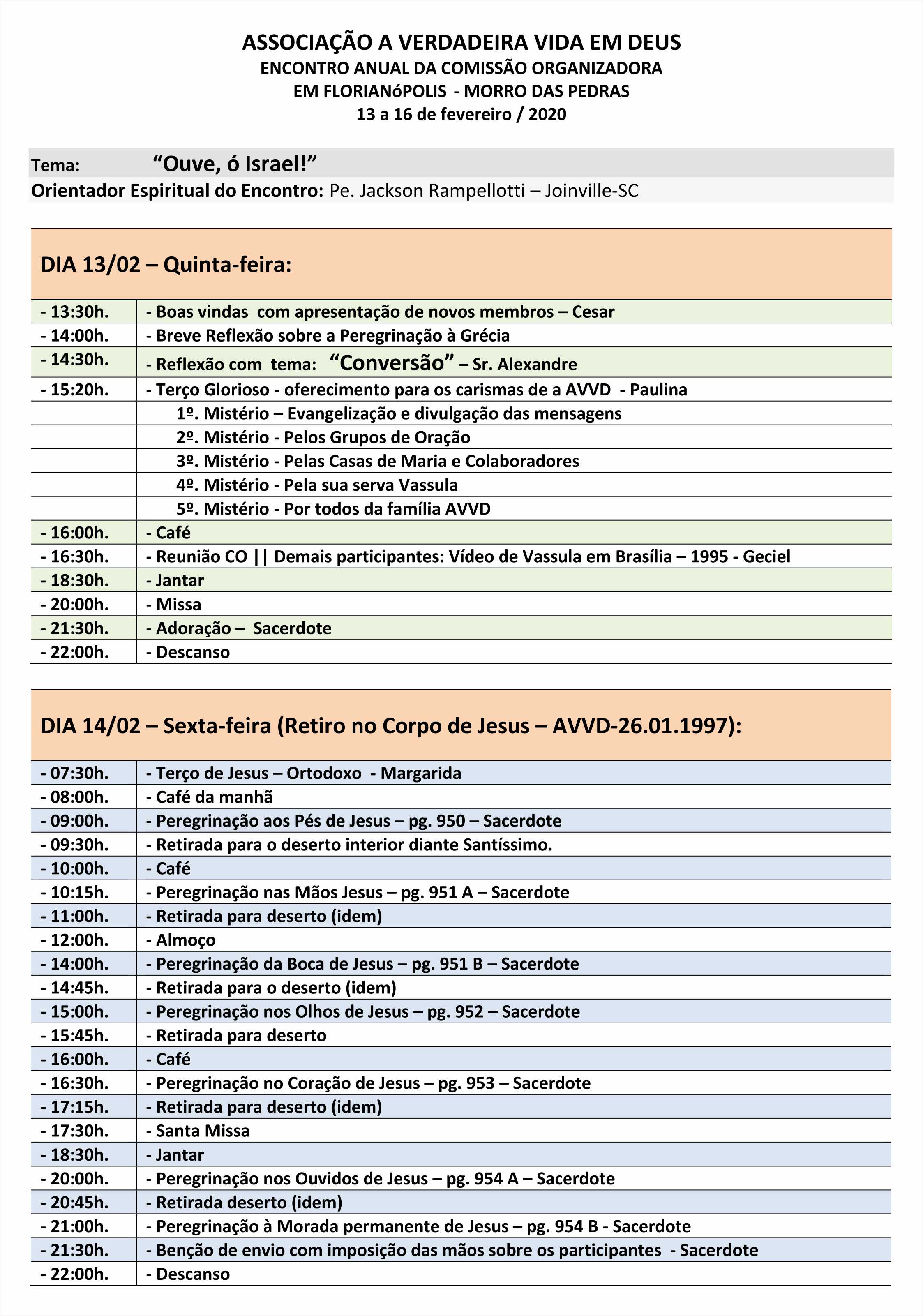 Florianópolis - SC, de 13 a 16/02/2020.