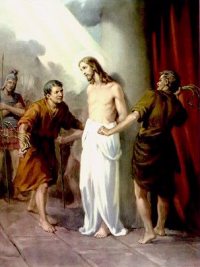 Meditação das Escrituras: Pilatos condena Jesus à morte e O entrega à flagelação. (Mt. 27, 11-26; Jo 18, 28-40 e 19,1).