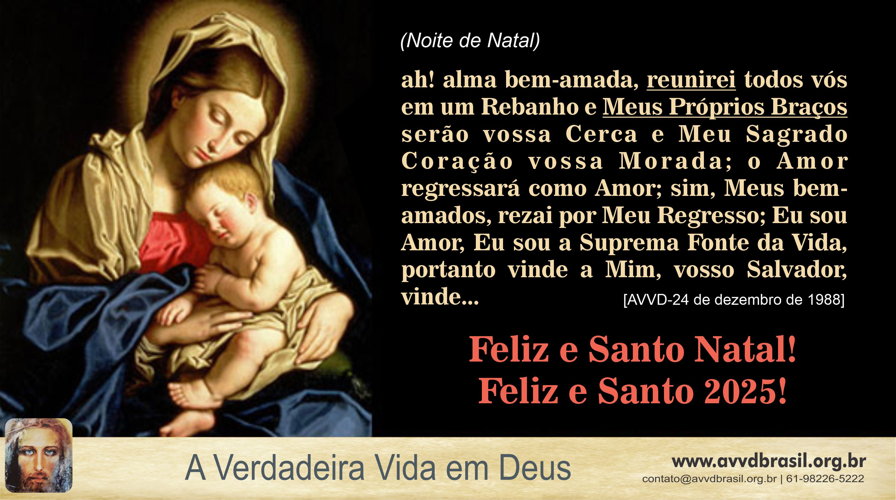 A ASSOCIAÇÃO A VERDADEIRA VIDA EM DEUS - BRASIL, AVVD - BRASIL, CNPJ: 20.087.868/0001-88, é uma associação civil sem fins lucrativos, com duração indeterminada, tem por fim a evangelização, através da difusão das mensagens de A Verdadeira Vida em Deus a todas as pessoas, tanto cristãos quanto não cristãos, e de todas as denominações religiosas, em todo o território brasileiro - objetivando a UNIDADE DOS CRISTÃOS.