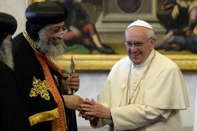 "O Patriarca da Igreja Copta Ortodoxa Tawadros II (Teodoro II), que tem uns 15 milhões de fiéis no Egito e ostenta tradicionalmente o título de Papa, enviou uma carta ao Papa Francisco, pelo primeiro aniversário de seu encontro com ele no Vaticano, entre outras coisas, convida o Papa a encontrar uma data única para a celebração da Páscoa em todas as igrejas cristãs, as do Oriente e as do Ocidente."